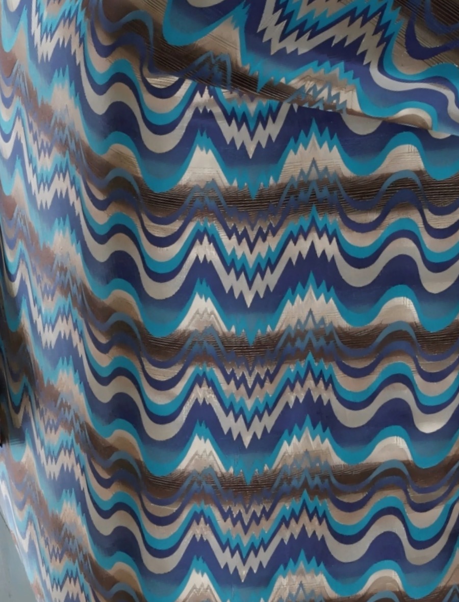 “炫色” 之名,恰如其分地展现出此系列布草的独特魅力。其色彩之绚丽,仿佛将万花筒中的斑斓世界凝于其上,每一次目光的触及,都似开启一场奇幻的视觉盛宴。丝滑的面料手感,如同轻抚潺潺流水,细腻而柔和,带来极致的触感体验。富有动感的图案设计,线条流畅且充满韵律,仿佛灵动的舞者在布面上翩翩起舞,为整个系列注入了无尽的活力与生机。